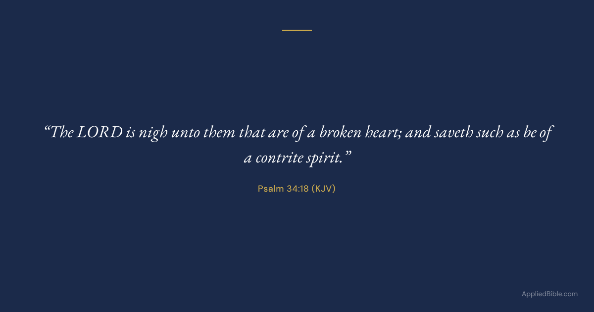 Psalm 34:18 is one of the most comforting: "The LORD is nigh unto them that are of a broken heart." It promises that when your heart is shattered, God does not stand at a distance. He moves closer. For many people, knowing that God is near in the worst moment is the thing that keeps them going.