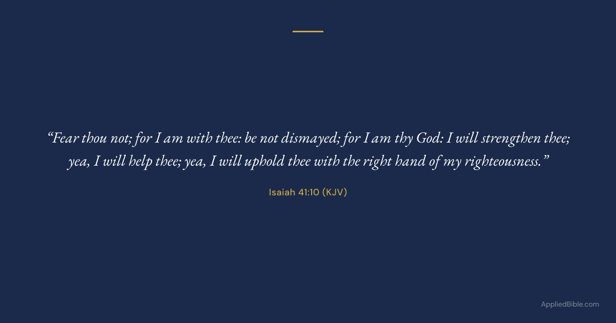 "Fear thou not; for I am with thee: be not dismayed; for I am thy God: I will strengthen thee; yea, I will help thee; yea, I will uphold thee with the right hand of my righteousness."